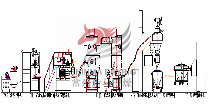 此次出口柬埔寨成套制粒聯(lián)動(dòng)線(xiàn)設(shè)備包含高速混合制粒機(jī)(含KZL-300)、沸騰制粒機(jī)、噴嘴制粒系統(tǒng)等。(下圖為制粒聯(lián)動(dòng)線(xiàn)設(shè)計(jì)方案參考圖)