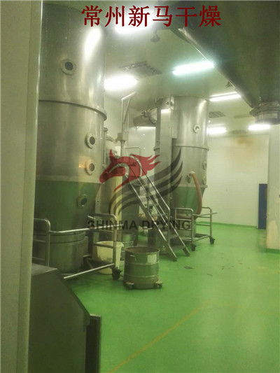 貴州漢方藥業(yè)訂購的固體制劑(顆粒)聯(lián)動生產(chǎn)線,包括物料調(diào)配設(shè)備、混合機、FL型沸騰干燥制粒機、整粒機,以及輸送周轉(zhuǎn)設(shè)備,在此生產(chǎn)線中,F(xiàn)L型沸騰干燥制粒機為主要生產(chǎn)設(shè)備。我公司生產(chǎn)的FL型沸騰干燥制粒機原理是:物料粉末粒子,在原料容器(流化床)中呈沸騰流化狀態(tài),受到經(jīng)過凈化后的加熱空氣預(yù)熱和混合,將粘合劑溶液霧化噴入,使若干粒子聚集成含有粘合劑的團粒,由于熱空氣對物料的不斷干燥,使團粒中水份蒸發(fā),粘合劑凝固,此過程不斷重復(fù)進行,形成理想的、均勻的多微孔球狀顆粒。特點如下: