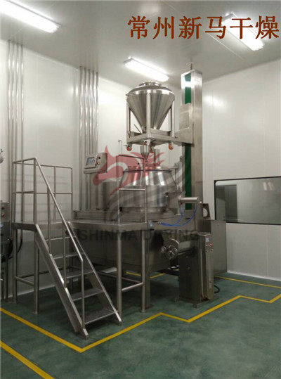 在傳統(tǒng)的造粒過程中,每臺(tái)設(shè)備都放置于獨(dú)立的凈化室內(nèi),如:濕法混合制粒機(jī)和流化干燥機(jī)分別在獨(dú)立的凈化室,普通攪拌機(jī)和粉碎造粒機(jī)在另一個(gè)房間。問題是必須提升他們之間的空間,