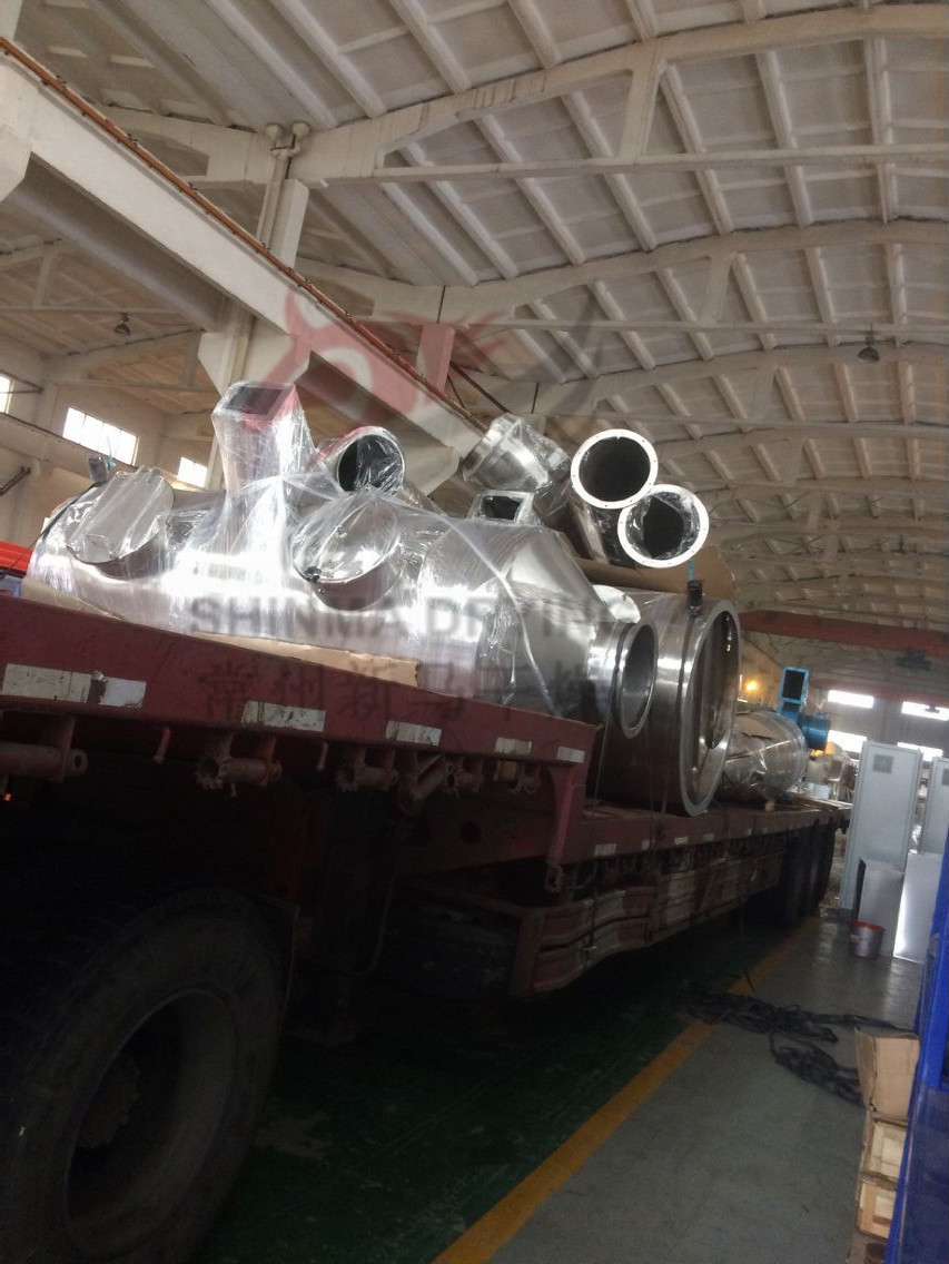 2臺用于植物提取的ZLPG-150中藥浸膏噴霧干燥機組順利裝車發(fā)貨內(nèi)蒙古錫林郭勒生泰爾公司,此干燥機組采用離心式霧化方式,霧滴與熱空氣采用并流式接觸,熱源和加熱方式為蒸汽加熱和電加熱補償方式,空氣過濾過濾系統(tǒng)為初效、中效、高溫高效空氣過濾器,且采用二級旋風(fēng)分離與水膜除塵,杜絕物料產(chǎn)品污染,PLC+觸摸屏程序控制更顯智能化。
