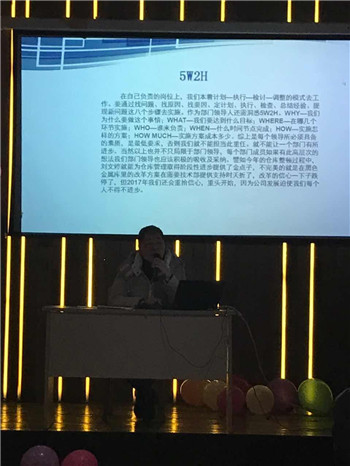 朱向華總經(jīng)理壓軸登場,以企業(yè)文化——“引領(lǐng)行業(yè)技術(shù)革新”為主題進(jìn)行了發(fā)言,健康向上的企業(yè)文化是一個(gè)企業(yè)戰(zhàn)無不勝的動(dòng)力之源,也是企業(yè)綜合實(shí)力的體現(xiàn),是一個(gè)企業(yè)文明程度的反映,也是知識(shí)形態(tài)的生產(chǎn)力轉(zhuǎn)化為物質(zhì)形態(tài)生產(chǎn)力的源泉和動(dòng)力。所以,朱總積極倡導(dǎo)塑造良好的企業(yè)文化氛圍,鼓勵(lì)員工用心工作、快樂生活,并對(duì)2017